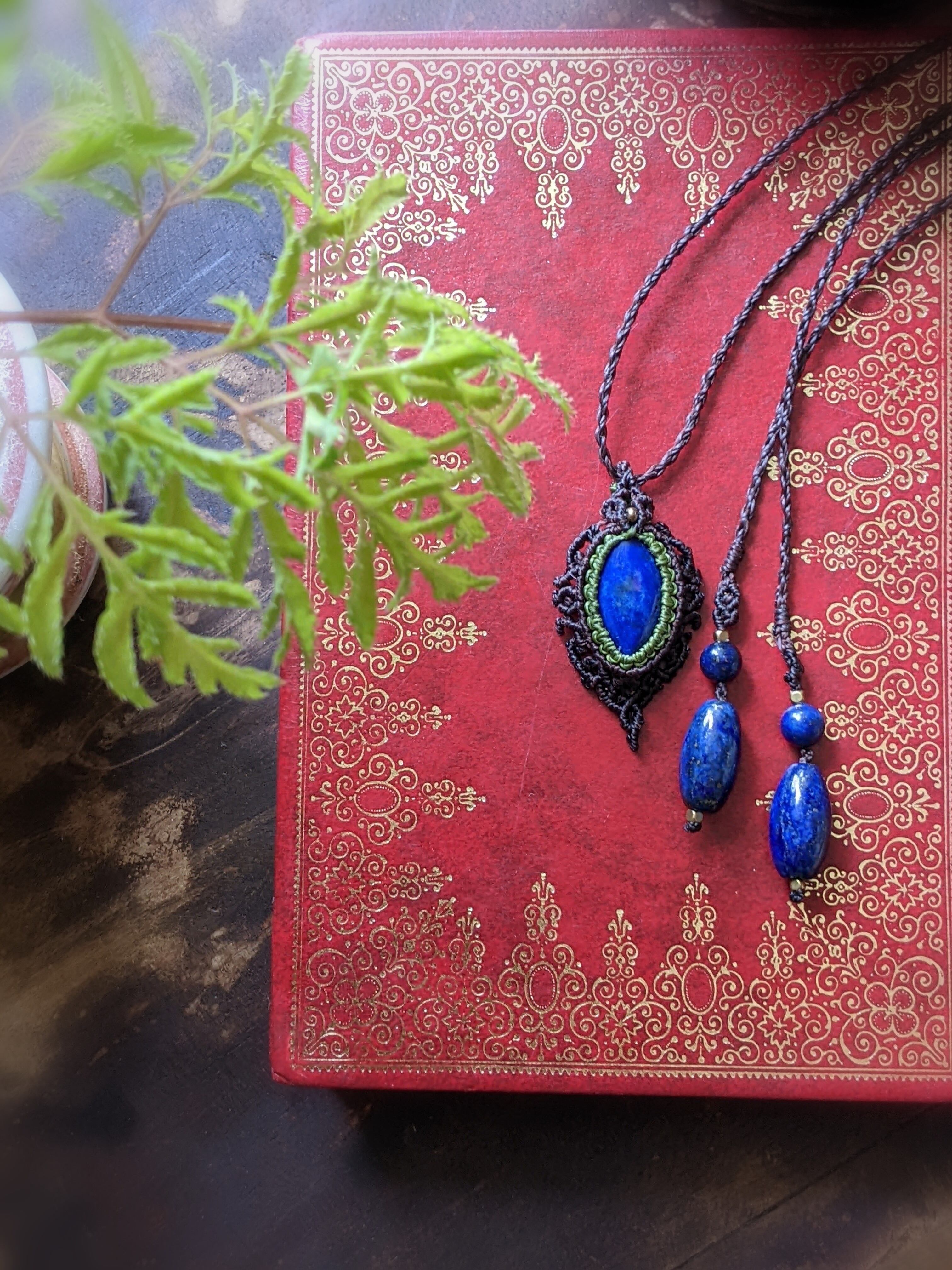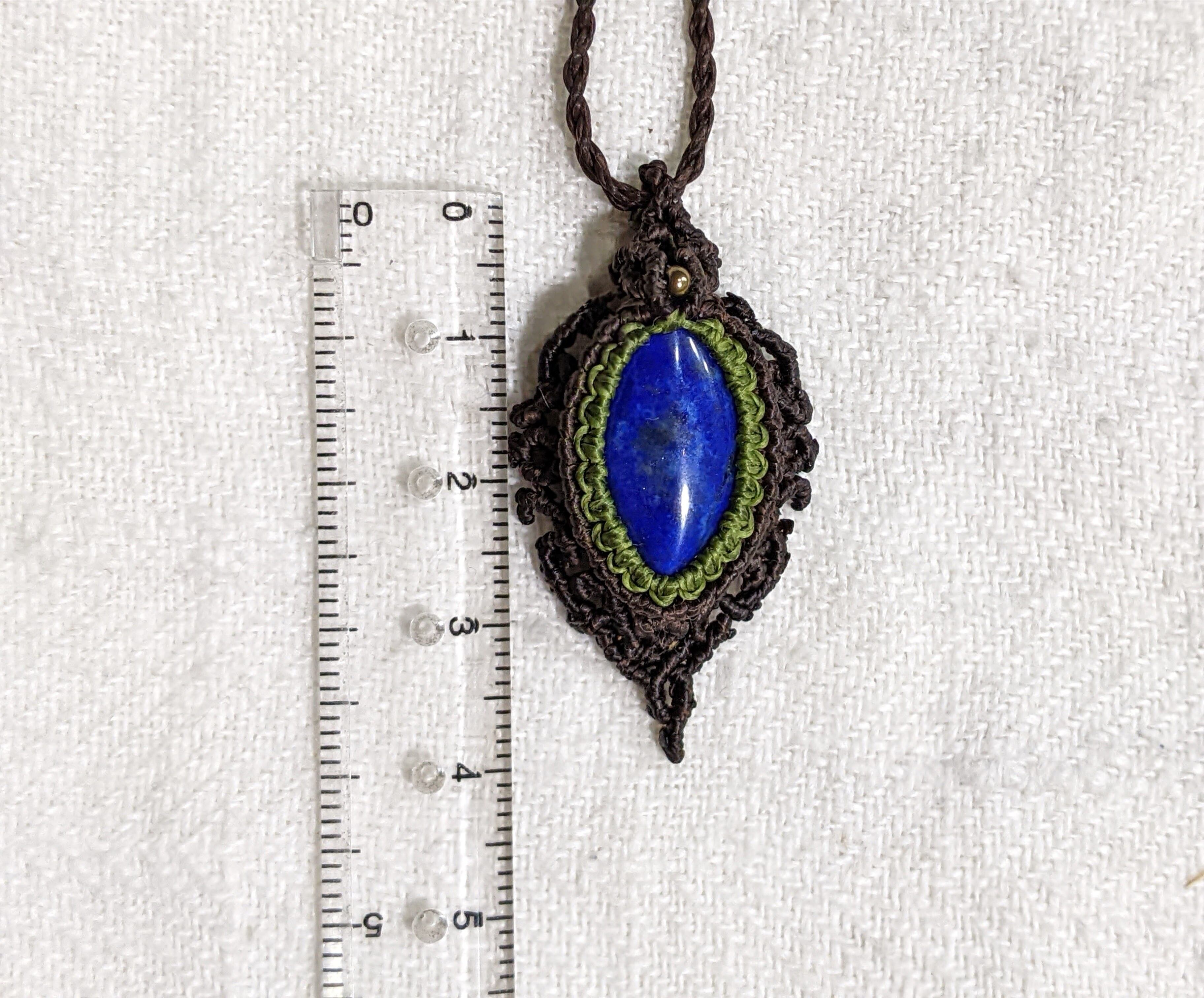 ご覧いただきありがとうございます。ラピスラズリのペンダントのご紹介です。馬の目型の 高品質なラピスラズリをペンダントに仕立てました。ネックレス紐の終わりにも、大ぶりなビーンズ型と6mmのラピスラズリを配し、お背中でもラピスの碧を 楽しんで頂けるようになっております。ペンダントのサイズは、縦 約4cm、横幅 約2.2cmと主張し過ぎない大きさです。